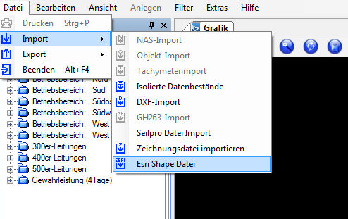 Das Programm bietet Ihnen die Möglichkeit, Esri Shape Dateien zu importieren.